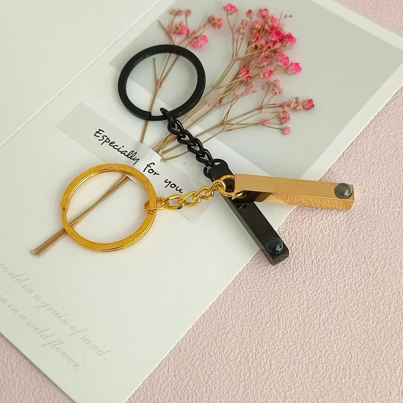 Turn your most special moment into a daily reminder with our Custom Bar Photo Engraved Keychain.